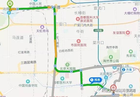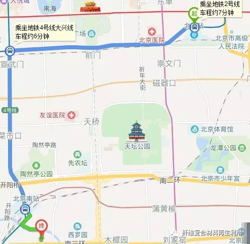 地鐵2號線——宣武門換乘地鐵4號線——北京南站票價4元